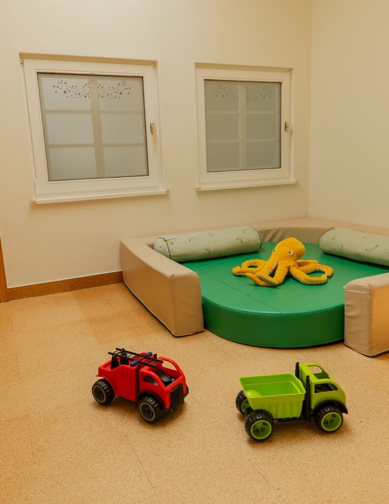 Die Betreuungszeiten liegen wochentags von 8:30 bis 12:15 Uhr und von 13:00 bis 16:00 Uhr. In dieser Zeit finden auch alle Therapien für die Eltern statt – so können Sie sich ganz auf Ihre Termine konzentrieren, während Ihr Kind gut aufgehoben ist.